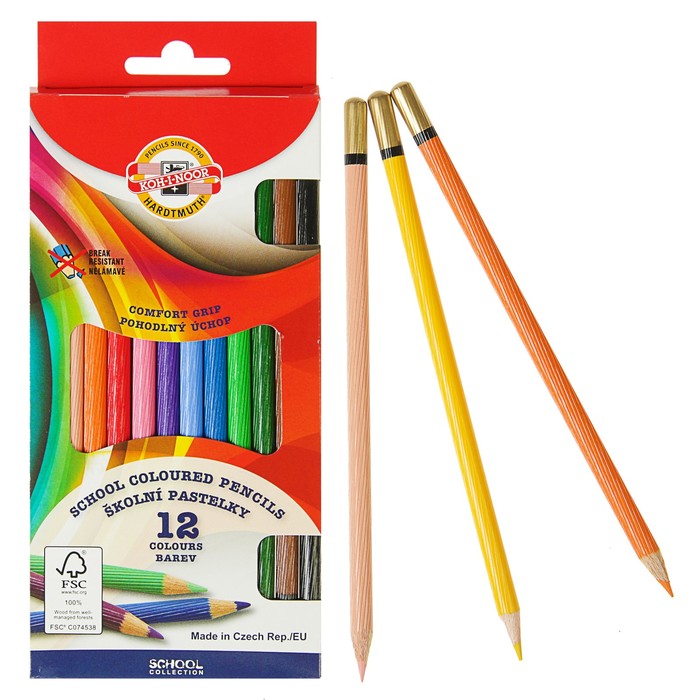 Карандаши 12 цветов Koh-I-Noor 2112, рифлёная поверхность, картонная упаковка, европодвес