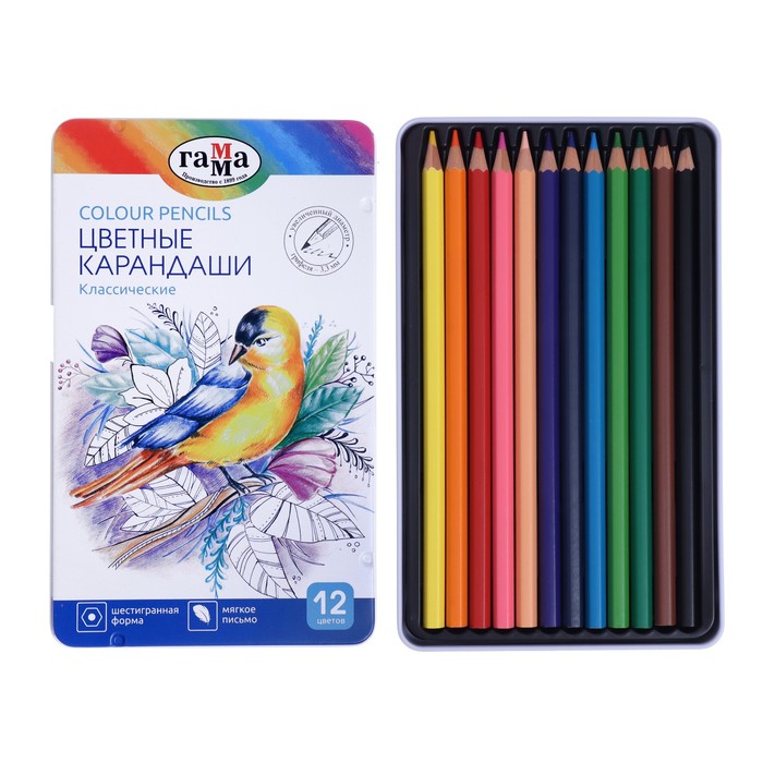 Карандаши 12цв Гамма "Классические", увел d-3,3мм, заточ, метал пенал 80220212