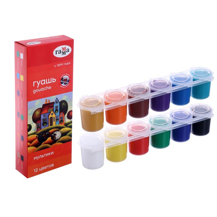 Гуашь 12 цветов × 15 мл «Гамма. Мультики», блок-тара, картонная упаковка 100222-12