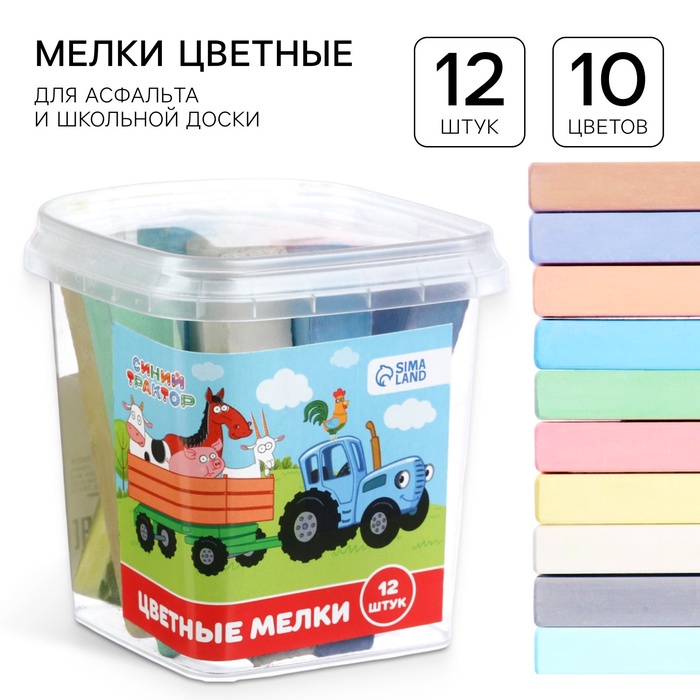 Мелки цветные, 12 штук, 10 цветов «Синий трактор»