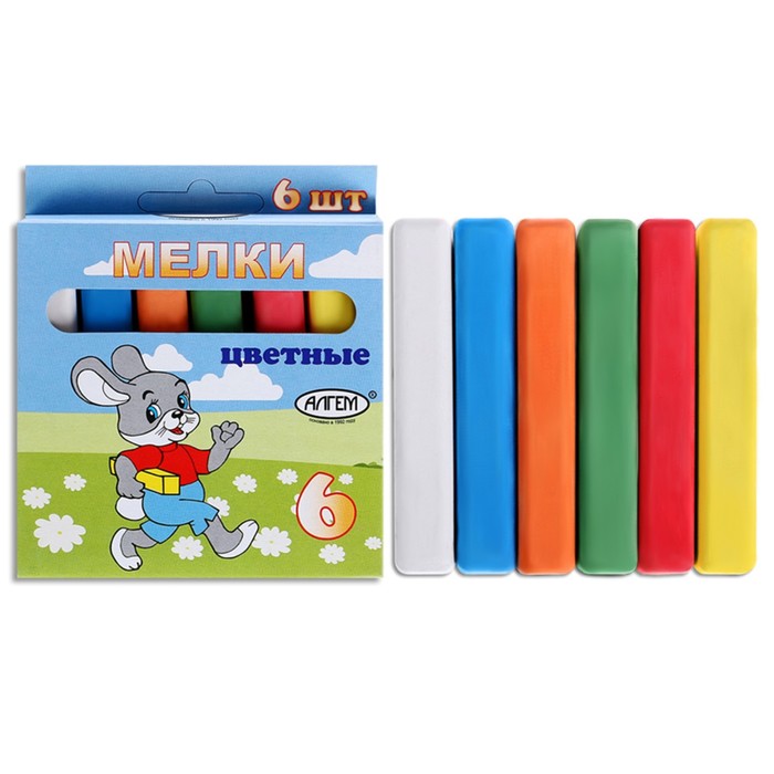 Мелки цветные «АЛГЕМ», в наборе 6 штук, квадратные