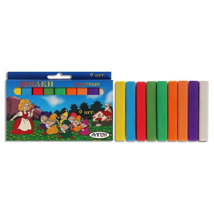 Мелки цветные «АЛГЕМ», в наборе 9 штук, квадратные