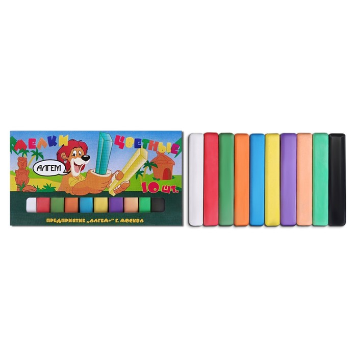 Мелки цветные «АЛГЕМ», в наборе 10 штук, квадратные