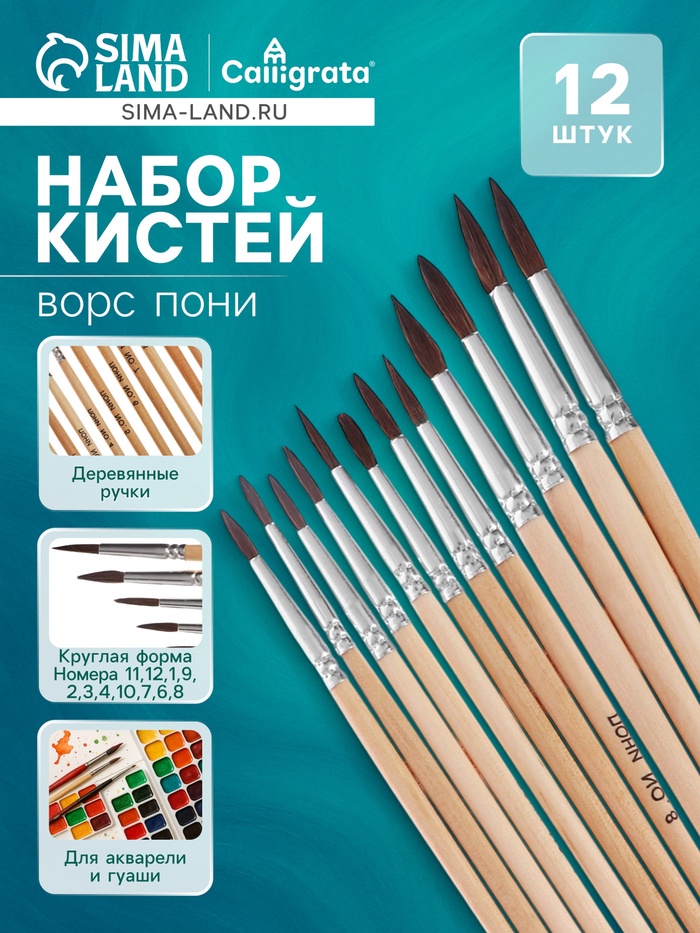 Кисть для рисования, пони, № 7, Calligrata, круглая, деревянная ручка