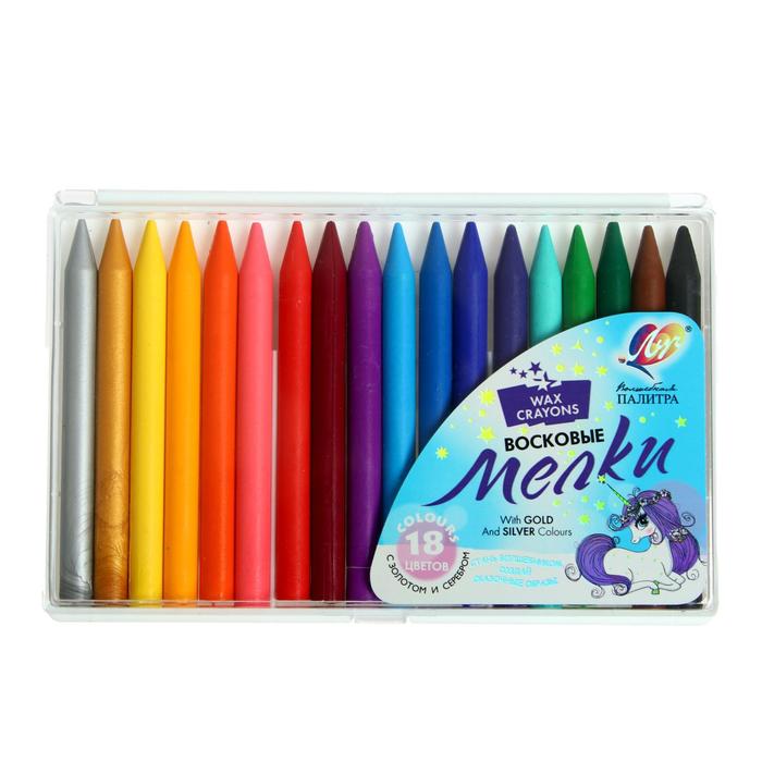 Мелки восковые 18 цветов (16 классических + 1 золотой + 1 серебряный) «Волшебная палитра», круглые