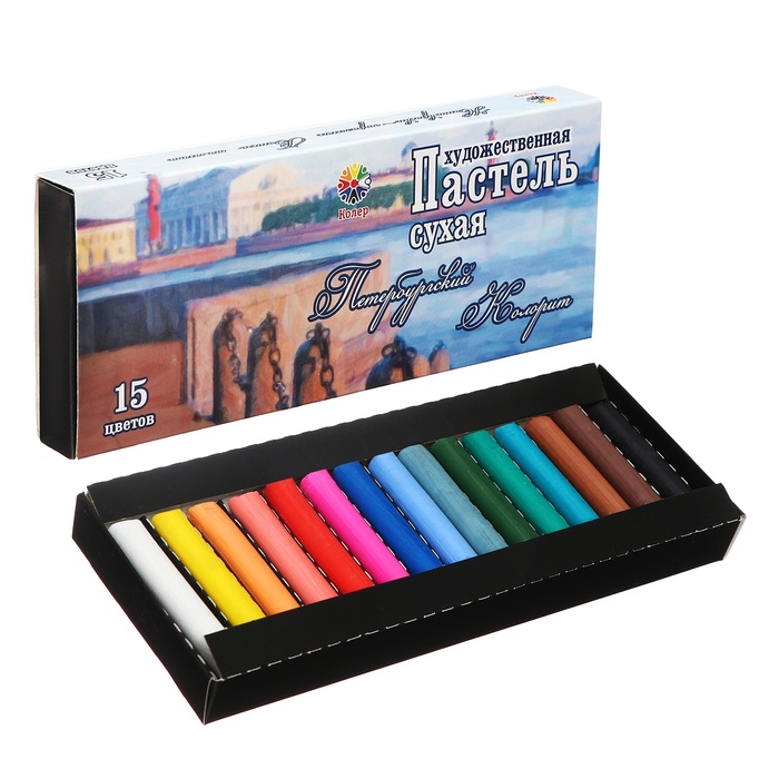 Пастель сухая, набор 15 цветов, Колер "Петербургская", D-8.5мм /L-60 мм, художественная