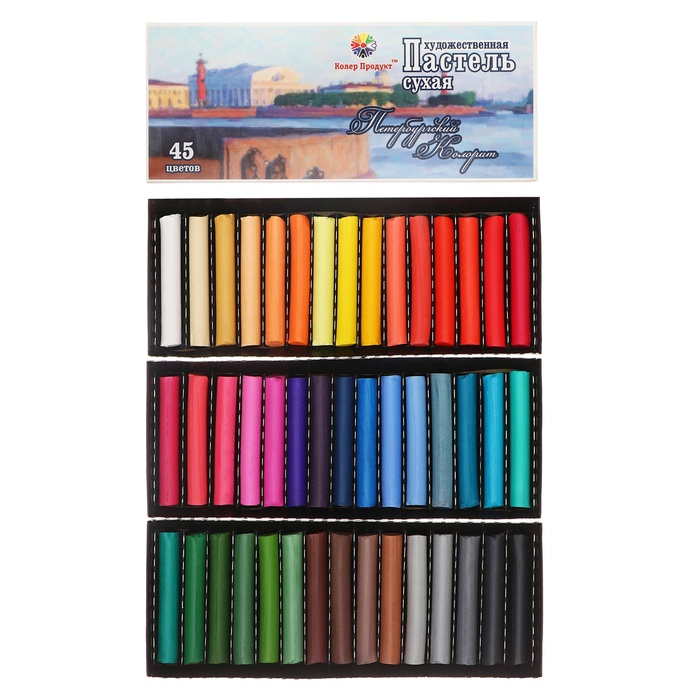 Пастель сухая, набор 45 цветов, Колер "Петербургская", D-8.5мм /L-60 мм, художественная