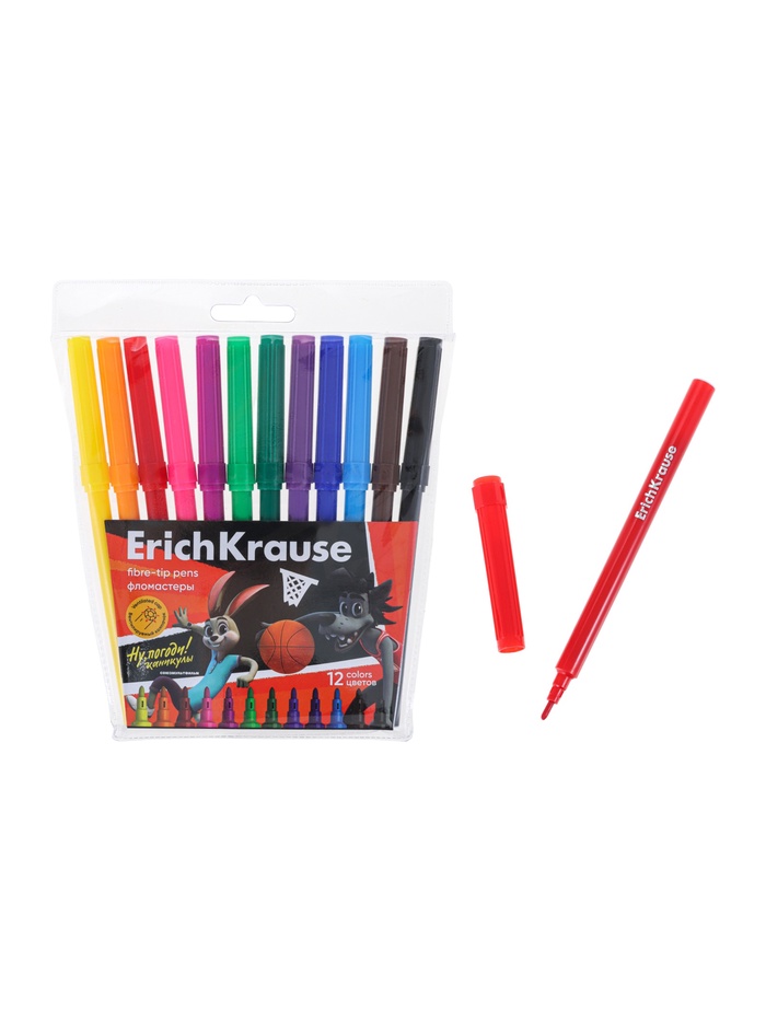 Фломастеры ErichKrause «Ну, Погоди! Каникулы», 12 цветов, на водной основе, яркие цвета, вентилируемый колпачок