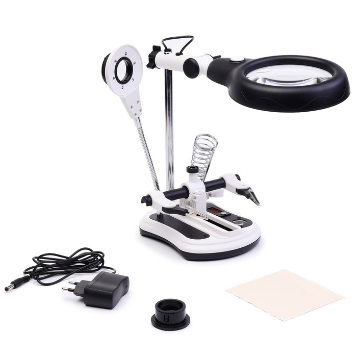Третья рука для пайки 2,5х, 5х, с подсветкой, 20*21*15 см, 3ААА,