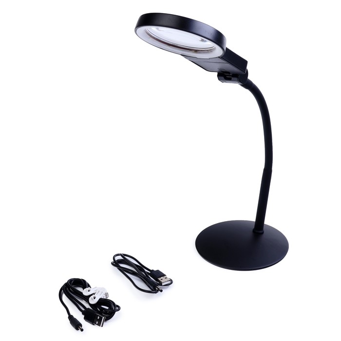 Лупа настольная складная, линзы 105мм/2.3х, 20мм/6х, подсветка USB