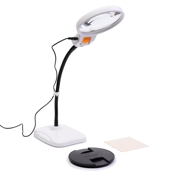 Лупа настольная складная, линзы 105мм/2.3х, 20мм/6х, подсветка USB