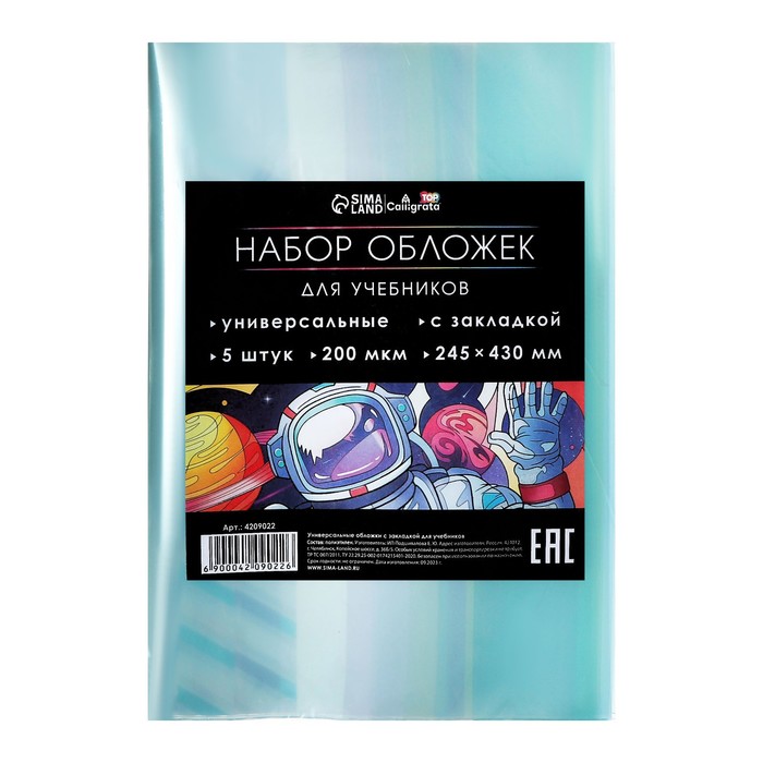 Набор обложек ПЭ 5 штук, 245 x 430 мм, 200 мкм, для учебников, универсальная, с закладкой, МИКС