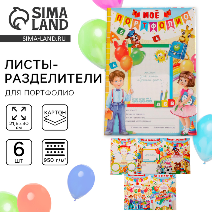 Листы разделители для школьного портфолио «Портфолио воспитанника детского сада», 6 листов, А4