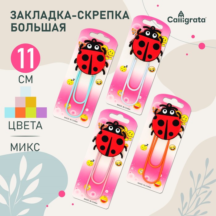 Закладка-скрепка большая «Божья коровка 2», 11 см, МИКС