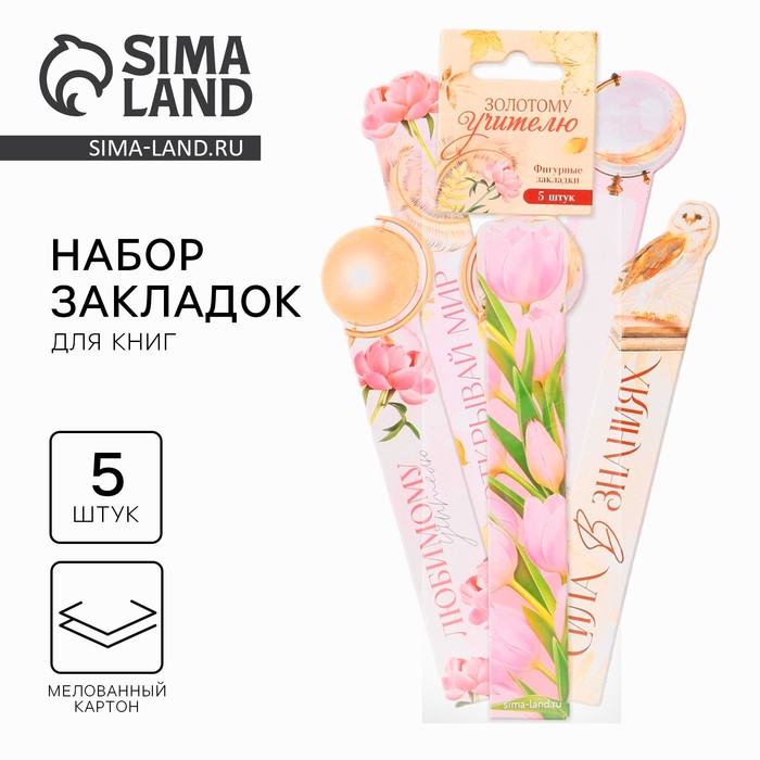 Закладки для книг, фигурные из картона, 5 шт. «Золотому учителю»