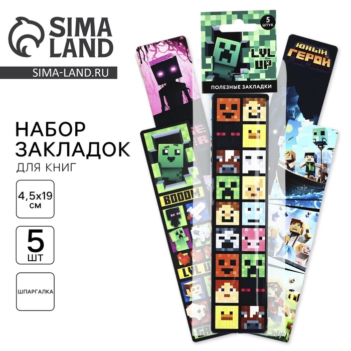 Закладки для книг, шпаргалки, 5 шт., картонные «Пиксель»