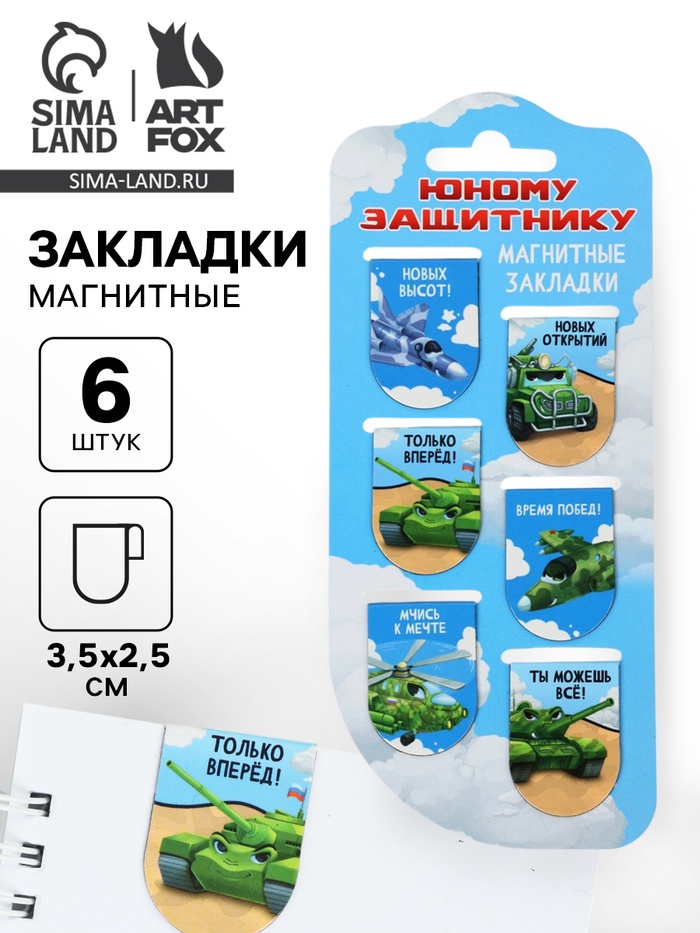 Магнитные закладки для книг, 6 шт. «Юному защитнику»