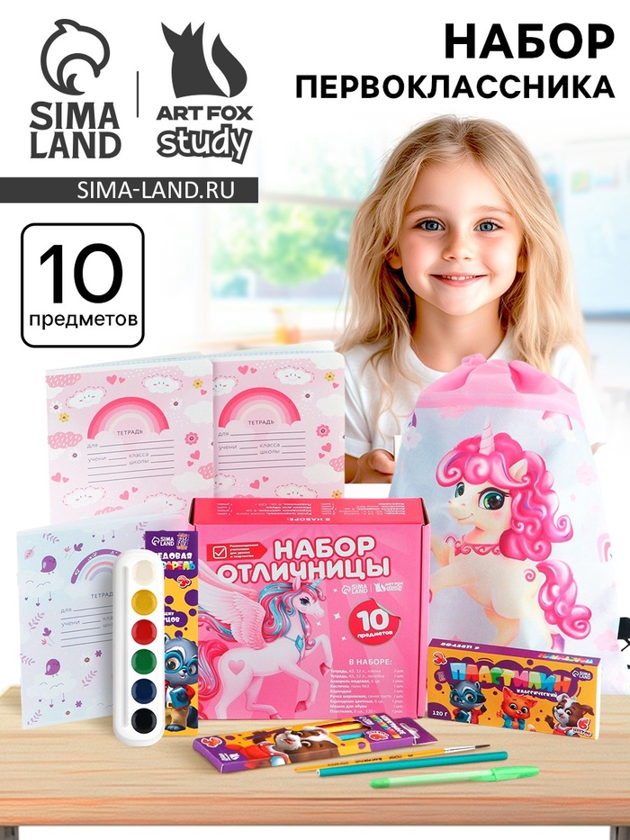 Набор первоклассника с мешком для обуви 10 предметов «Отличница»