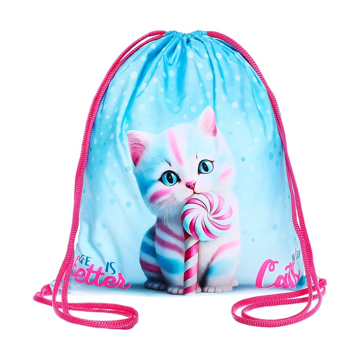 Мешок для обуви 490 х 410 мм, Оникс МО-27-1, "Котик Карамелька"