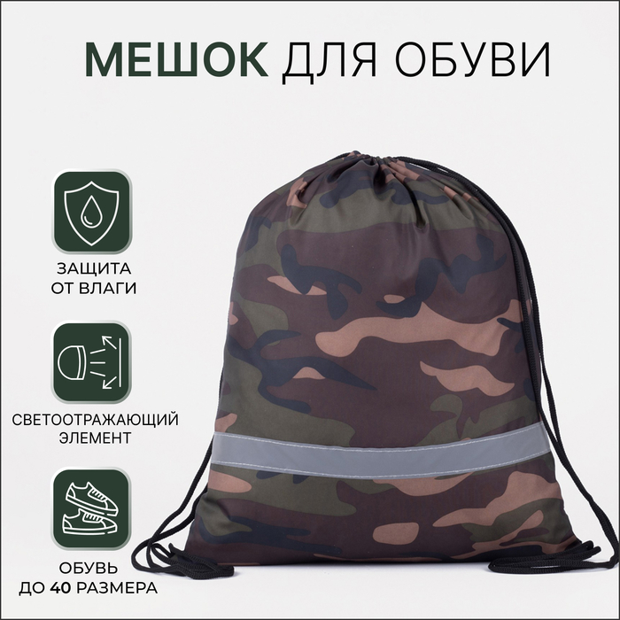 Мешок для обуви на шнурке, «ЗФТС», светоотражающая полоса, цвет камуфляж