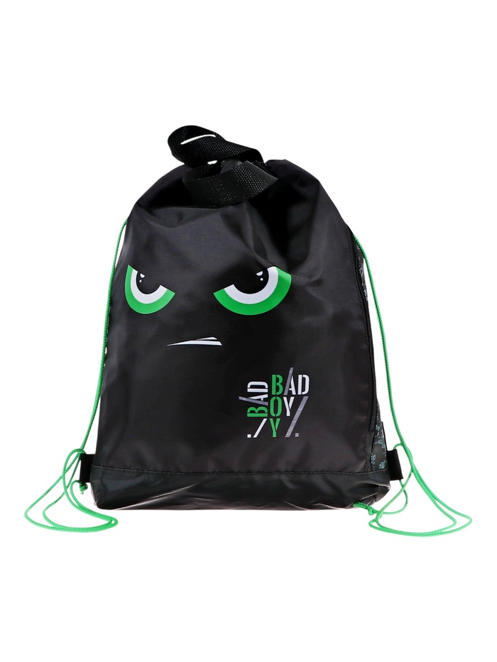 Мешок для обуви с карманом 430х380 мм, deVENTE "Bad Boy", расширенное дно 9 см, для мальчиков, черный