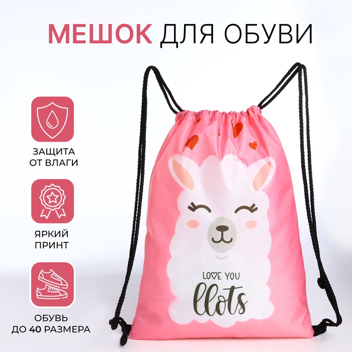 Мешок для обуви на шнурке, 32 х 0,5 х 40 см, с принтом, розовый