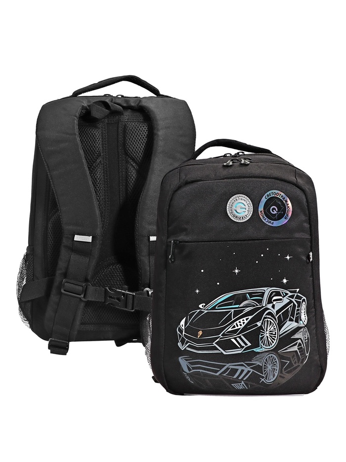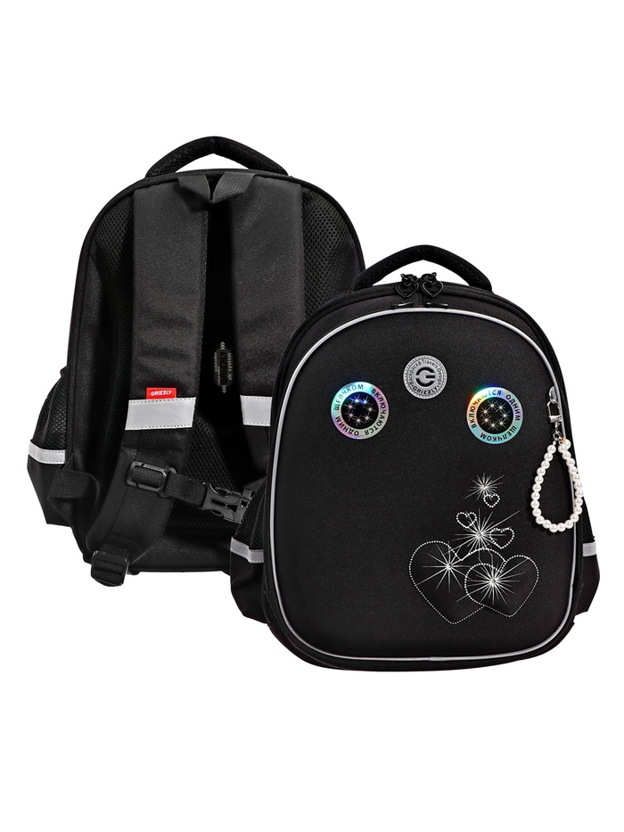 Рюкзак школьный, 39×26×19 см, Grizzly, эргономичная спинка, отделение для ноутбука, чёрный, RB-556-2_2