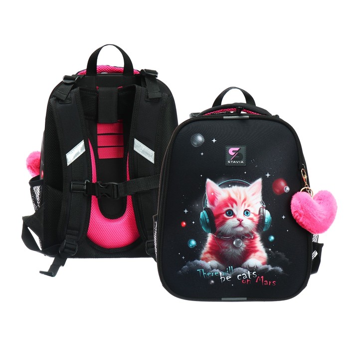 Рюкзак каркасный школьный 38×30×16 см, эргономичная спинка, Stavia «Марсианский котик», чёрный