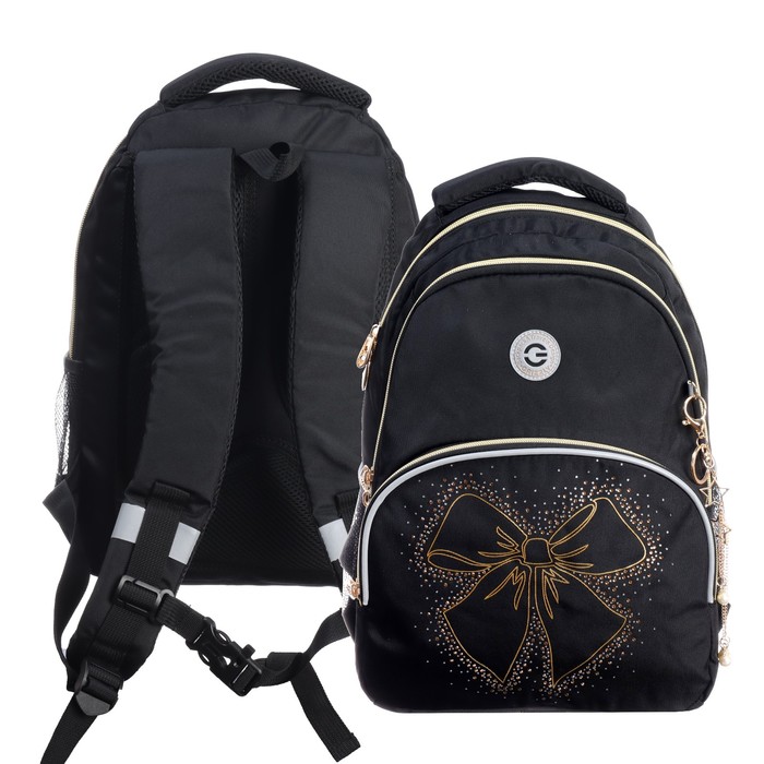 Рюкзак школьный, 40×27×20 см, Grizzly, эргономичная спинка, отделение для ноутбука, чёрный