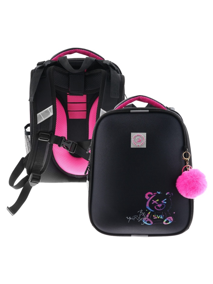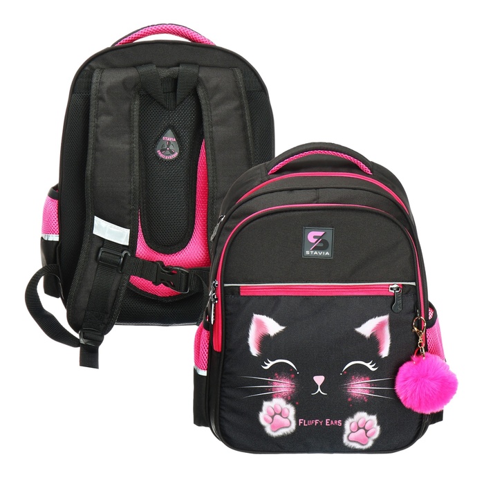 Рюкзак школьный, 40×33×19 см, эргономичная спинка, Stavia «Мордашка», чёрный/розовый