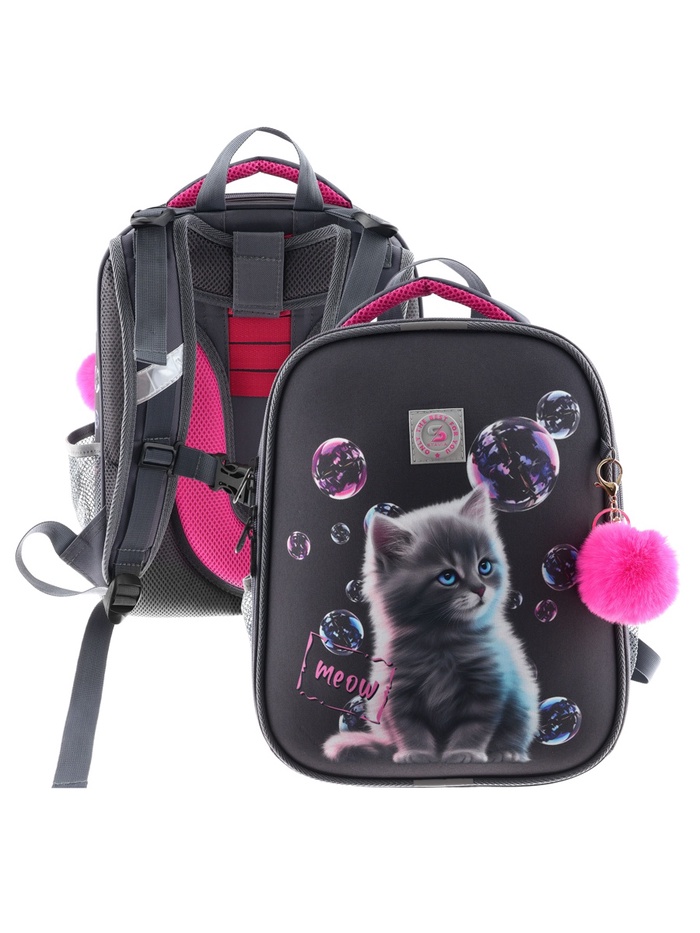 Рюкзак каркасный, школьный, 38×30×16 см, эргономичная спинка «Котенок с пузырями»