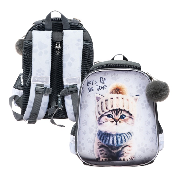 Рюкзак каркасный, 35×26×13, Seventeen, девочка EVA, серый