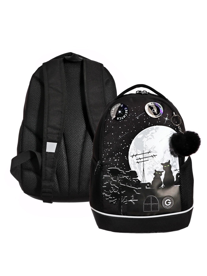 Рюкзак школьный, 39×26×17 см, Grizzly, эргономичная спинка, чёрный, RG-566-2_2