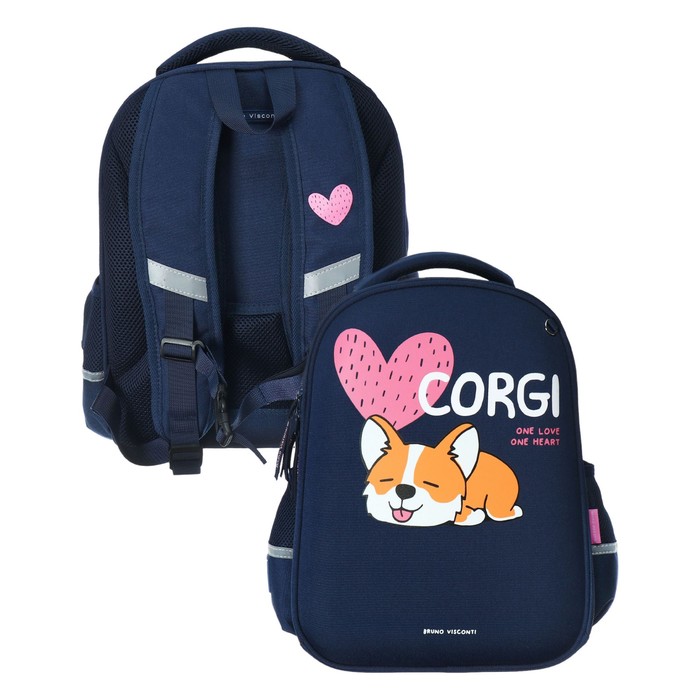 Рюкзак каркасный, 38 х 30 х 20 см, Bruno Visconti 12-001 "КОРГИ.ONE LOVE", для девочек