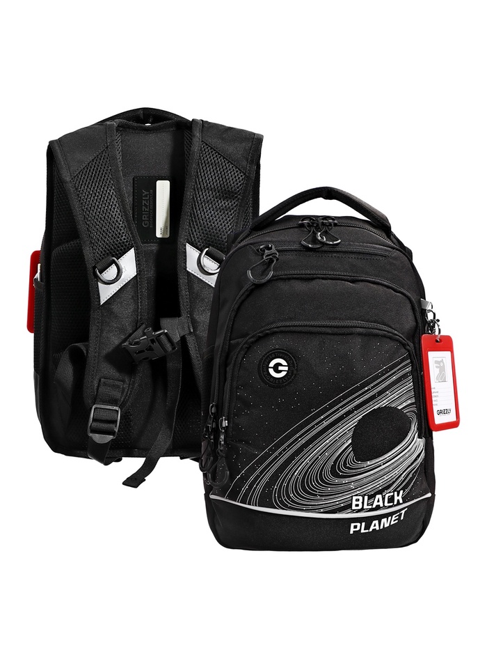Рюкзак школьный, 39×26×19 см, Grizzly, эргономичная спинка, отделение для ноутбука, чёрный, RB-556-2_1