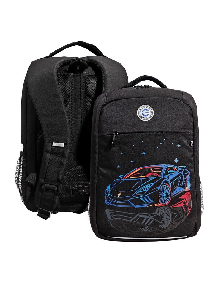 Рюкзак школьный, 40×25×22 см, Grizzly, эргономичная спинка, отделение для ноутбука, чёрный, RB-550-3_2