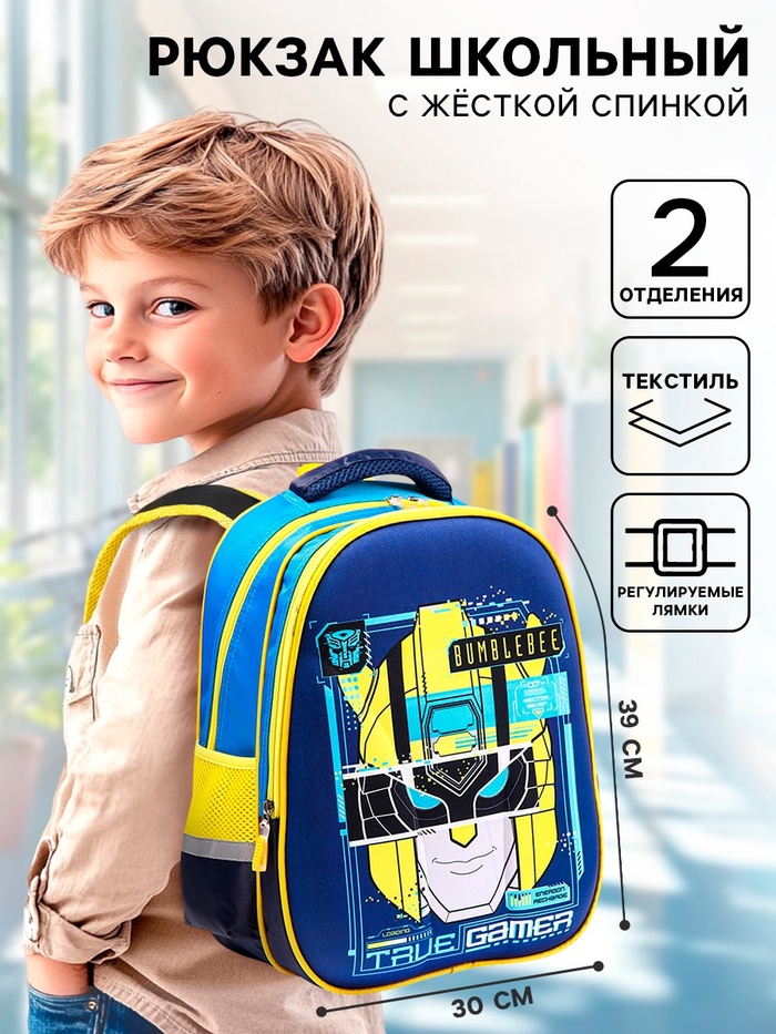 Рюкзак школьный для мальчика, 39 см × 30 см × 14 см «Бамблби», Трансформеры