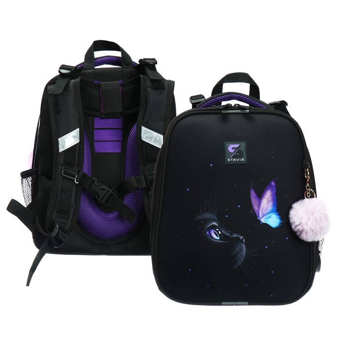 Рюкзак каркасный школьный 38×30×16 см, эргономичная спинка, Stavia «Кошка», чёрный