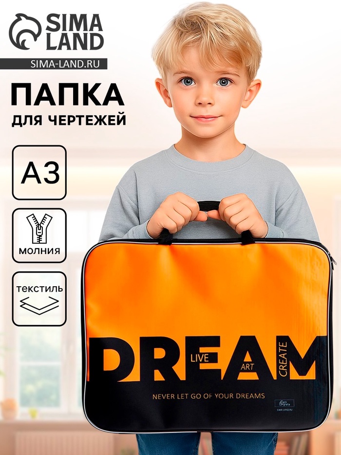 Папка для чертежей и рисунков Dream А3, 470×350×20 мм, с ручками, текстильная