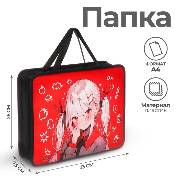 Папка с ручками А4, 330×260×75 мм, пластиковая, ручки-тесьма, «Аниме девочка»