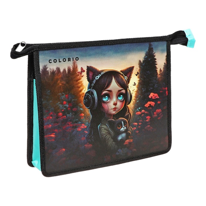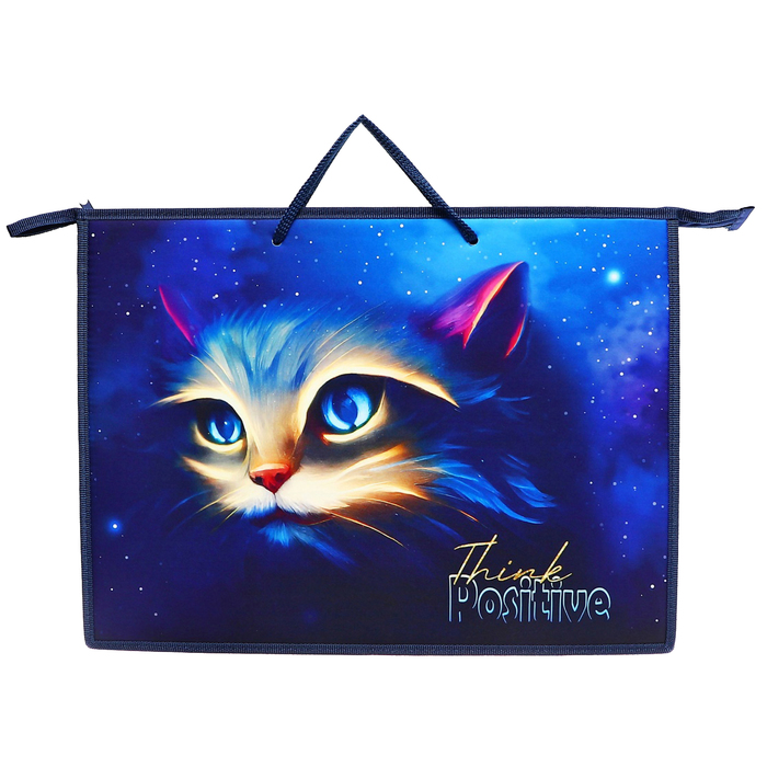 Папка для чертежей и рисунков А3 470x345x50 мм, с ручками, пластик/текстиль, молния сверху, ПР 3 -20, "Магия кота"