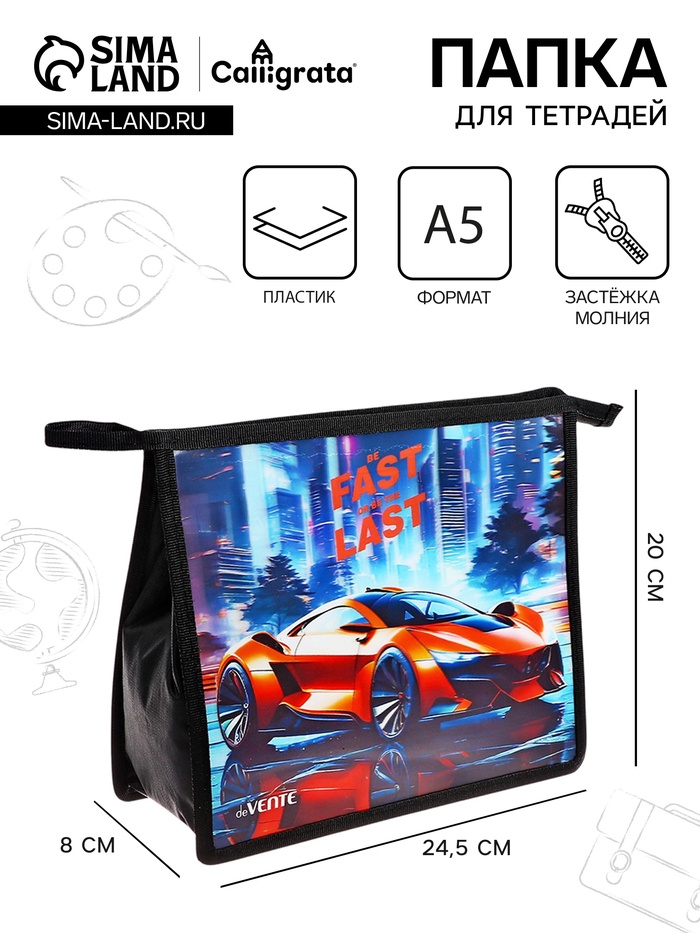 Папка для тетрадей А5, 243x200x80 мм, deVENTE "Fast Or Last", молния сверху, пластиковая, для мальчика
