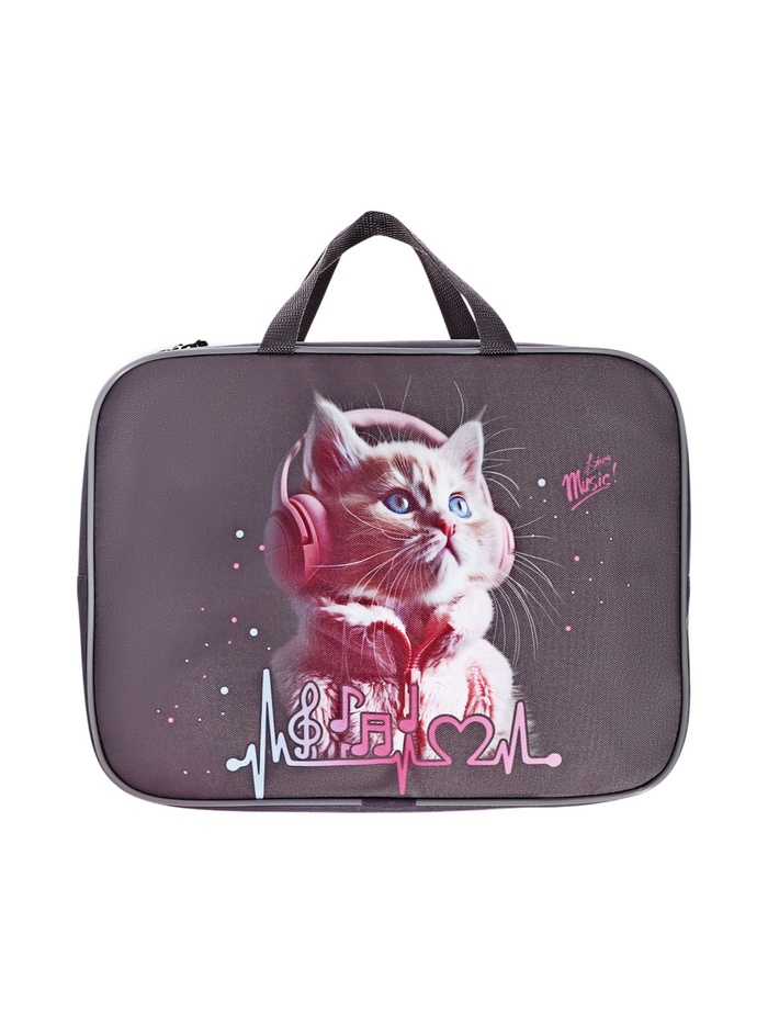 Папка с ручками текстильная А4, 350×270×80 мм, Stavia «Котик в наушниках»