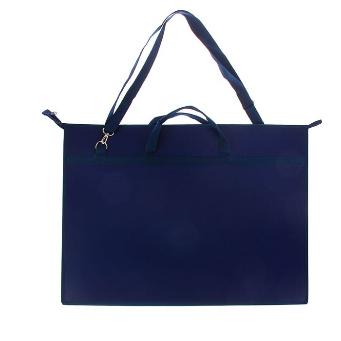 Папка для чертежей и рисунков А2, 650 х 480 х 50 мм, с ручками, пластиковая, молния сверху, плечевой ремень, синяя