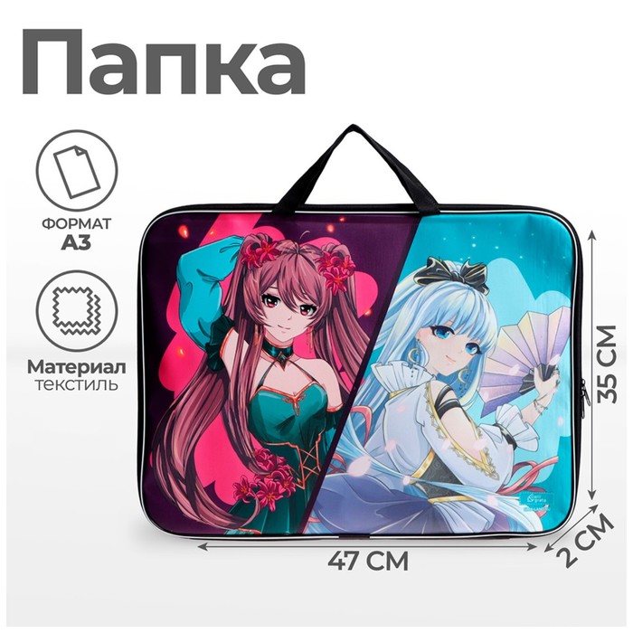 Папка с ручками, А3, текстильная, 47×35×2 см «Аниме»