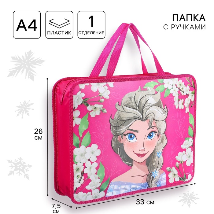 Папка пластиковая с ручками А4, на молнии, 7.5×33×26 см, «Холодное сердце»