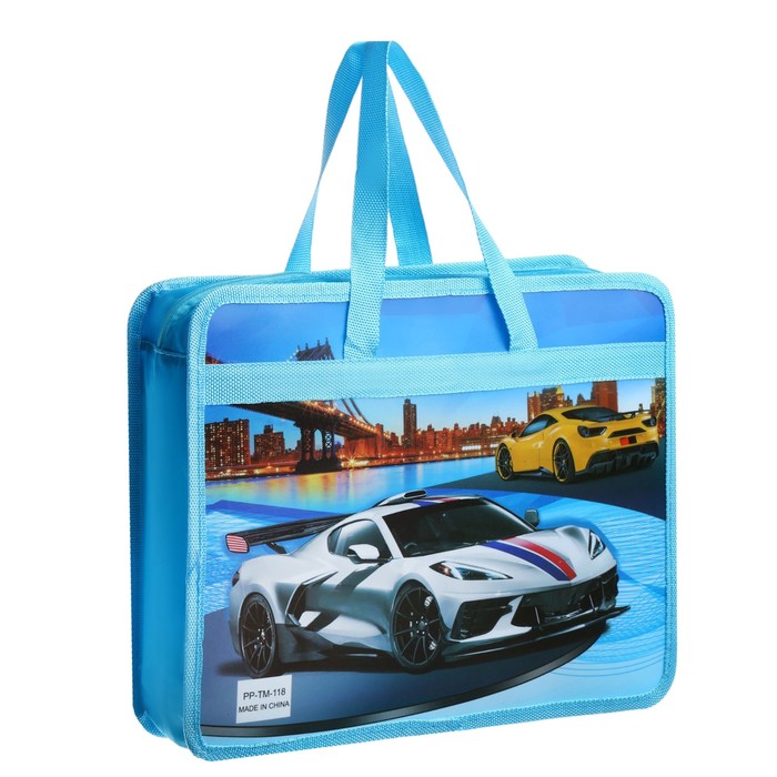 Папка с ручками пластиковая А4, 37×22×5 см «Машины», МИКС