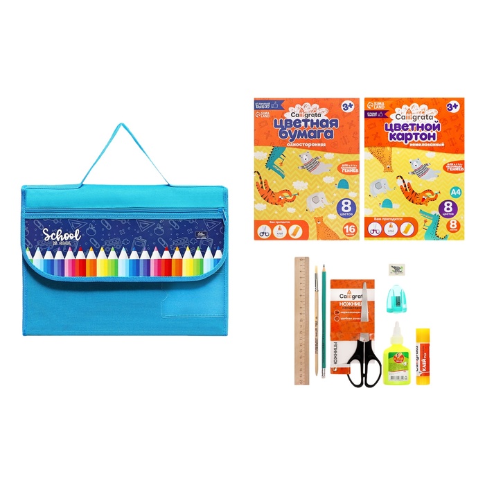 Подарочный набор 10 предметов «Карандаши» в папке, молния вокруг