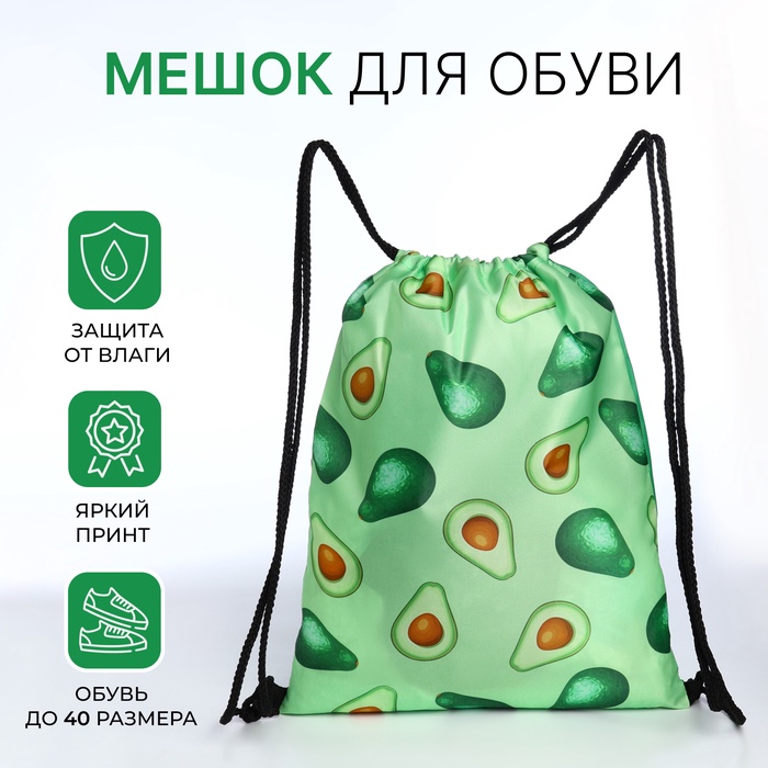 Мешок для обуви на шнурке, с принтом, размер 45×1×34 см, чёрный/белый/зелёный