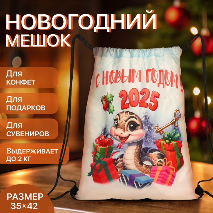 Мешок для обуви на шнурке, размер 35×1×42 см, новогодний, разноцветный